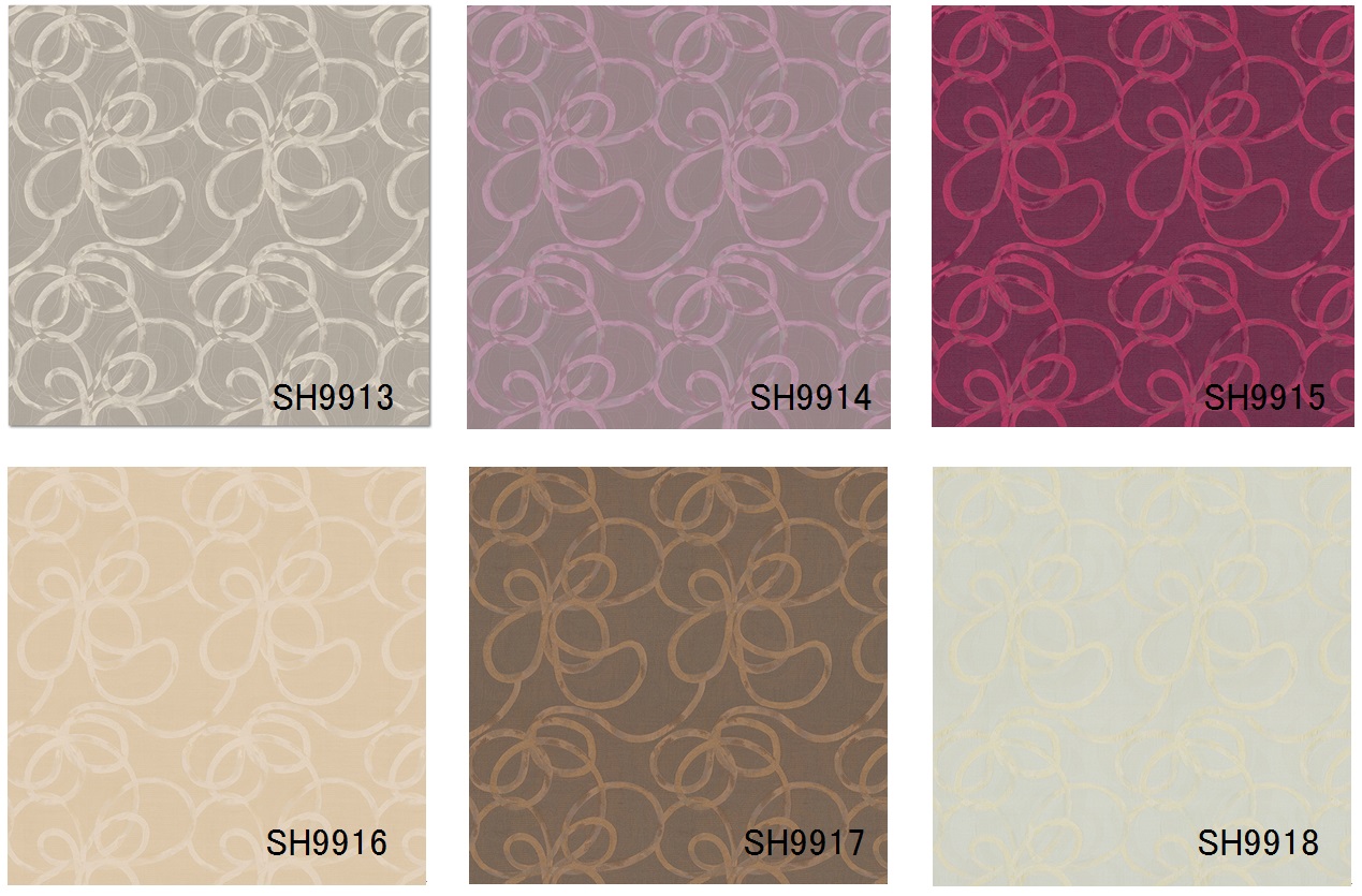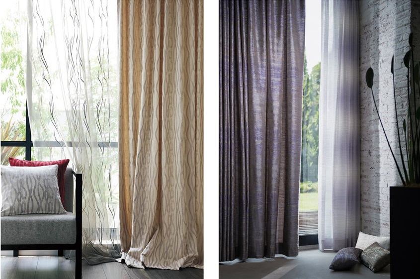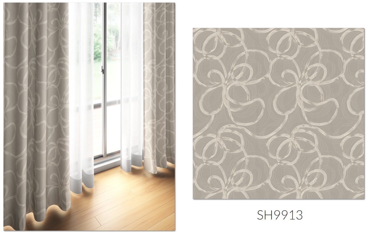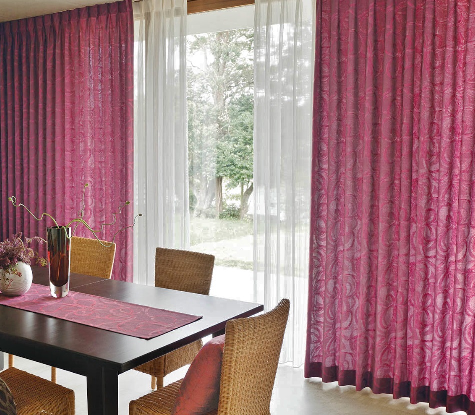加工スタイルも、アートな平面表現のローマンシェードから、プリーツでリボンのうねりと奥行きを密に表現したカーテンまで幅広くお使いいただけます。
