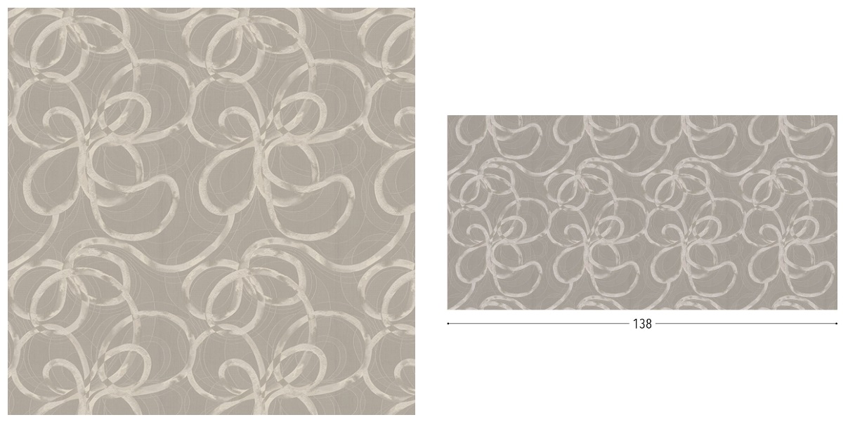 シンプルとは言っても、リボンの輝き、陰影、動きを表現する糸づかいは非常に複雑かつ緻密で、川島織が得意とする立体感ある 風通織に収縮糸を使用することで、全体に繊細な表情が加わり、極上のモダンと、優しさや温かみを感じられる作品となっています。
