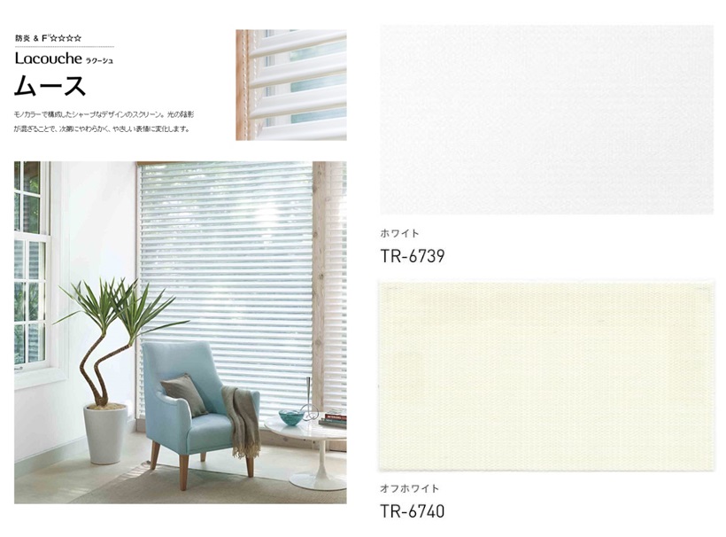 ミツワインテリアでは、ハンターダグラス 『シルエットシェード』、ニチベイ 『ha・na・ri(ハナリ)』、WIS 『FUGA(フーガ)』、タチカワ『ルミエ』、ノーマン『スマートドレープシェード』 の展示品と並べて、トーソー『ラクーシュ』を展示しております。