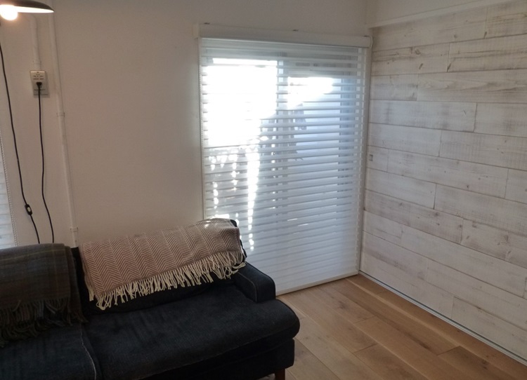 こちらは、スラットを水平に開いた「採光モード」。