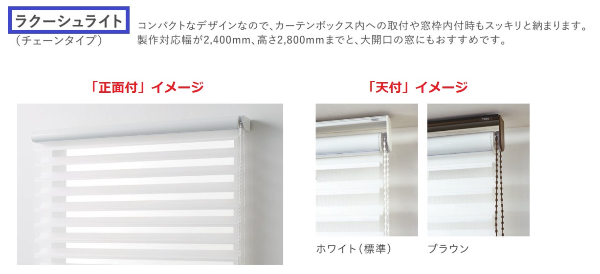 『ラクーシュ』のヘッドレール仕様は『ラクーシュデコラ』と『ラクーシュライト』の2種類。