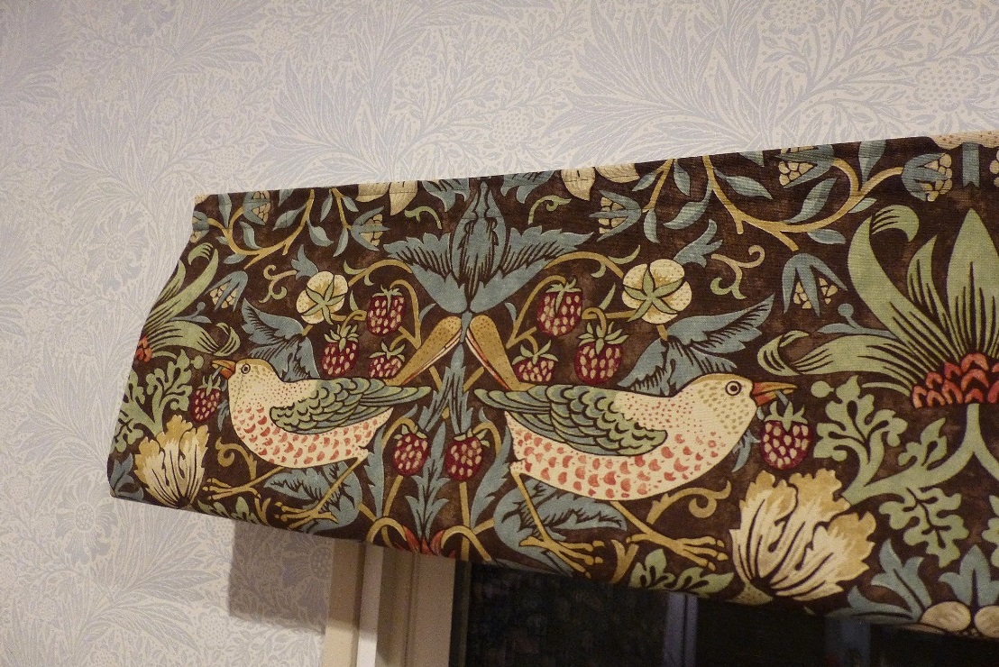 ウィリアム・モリス『イチゴドロボウ』で楽しむ、「ローマンシェード」と「装飾カーテンレール」のコーディネート。