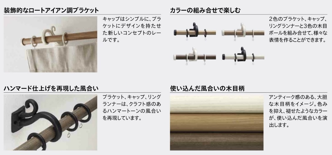 ただし、ポール径の太い木製レールなどを使用する場合は、カーテン上部が手前に傾きやすく、