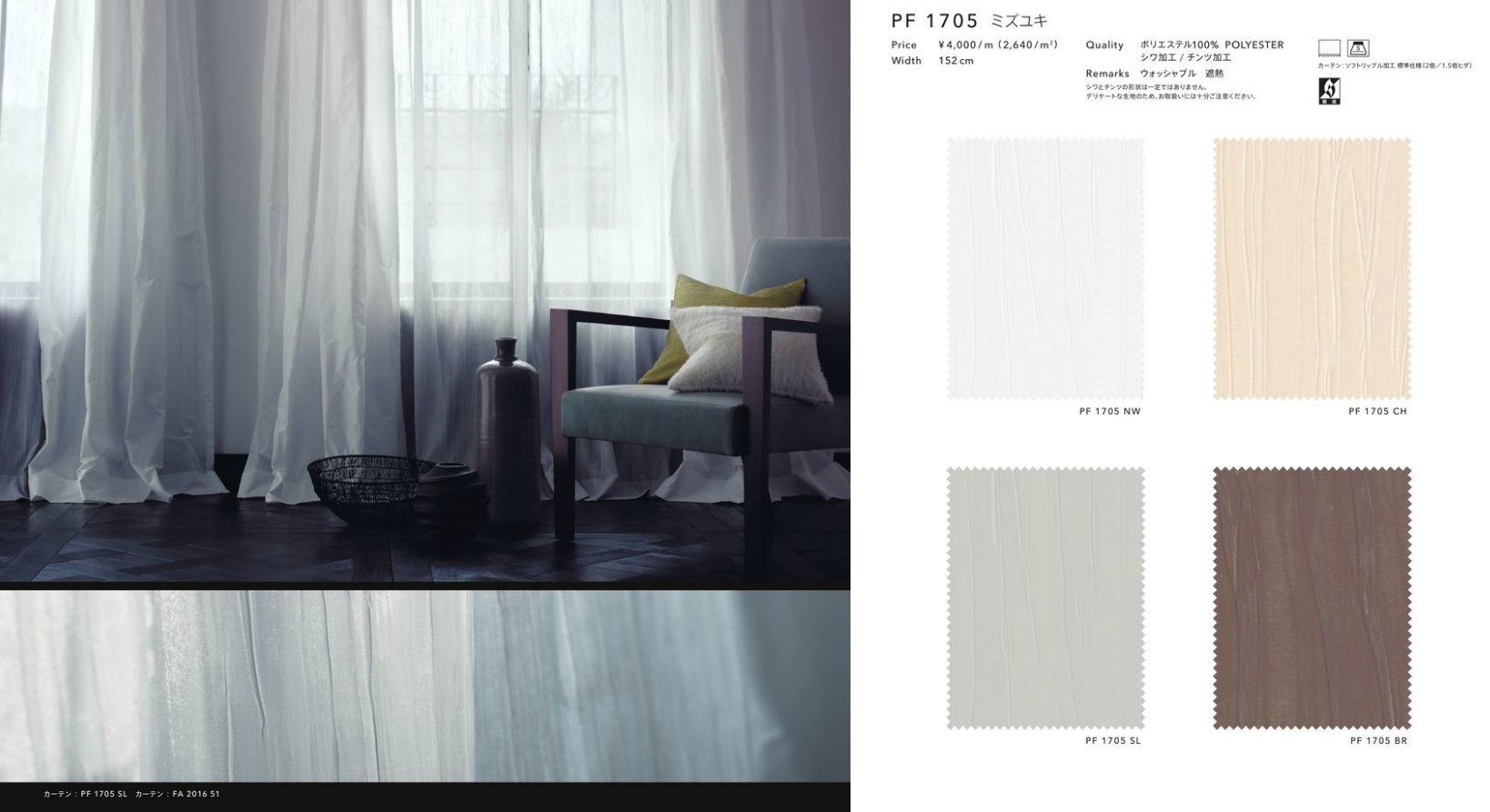『ミズユキ』は高層マンションの大開口窓でレース1枚掛けとしての使用を想定して開発された製品ということもあり、帝人ファイバーのハイテク遮熱繊維「涼しや」を85%使用しています。