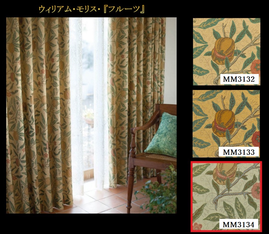 『書斎』のカーテンのリニューアルに、ウィリアム・モリス、1862年の作品、『Fruits (フルーツ)』をご採用戴いたオーダーカーテン納品事例をご紹介させていただきます。