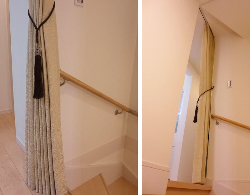 また、3階からは冬場の降りてきやすく、暖房の暖気が逃げやすい特徴があるため、開口部をカーテンで間仕切る空調対策を講じる場合があります。