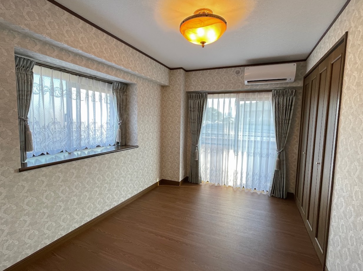 続いて寝室には、フジエテキスタイルのカタログ「PROFILE」収録のイタリア製ファブリック『ヤチヨ』・PF6059をご採用いただきました。