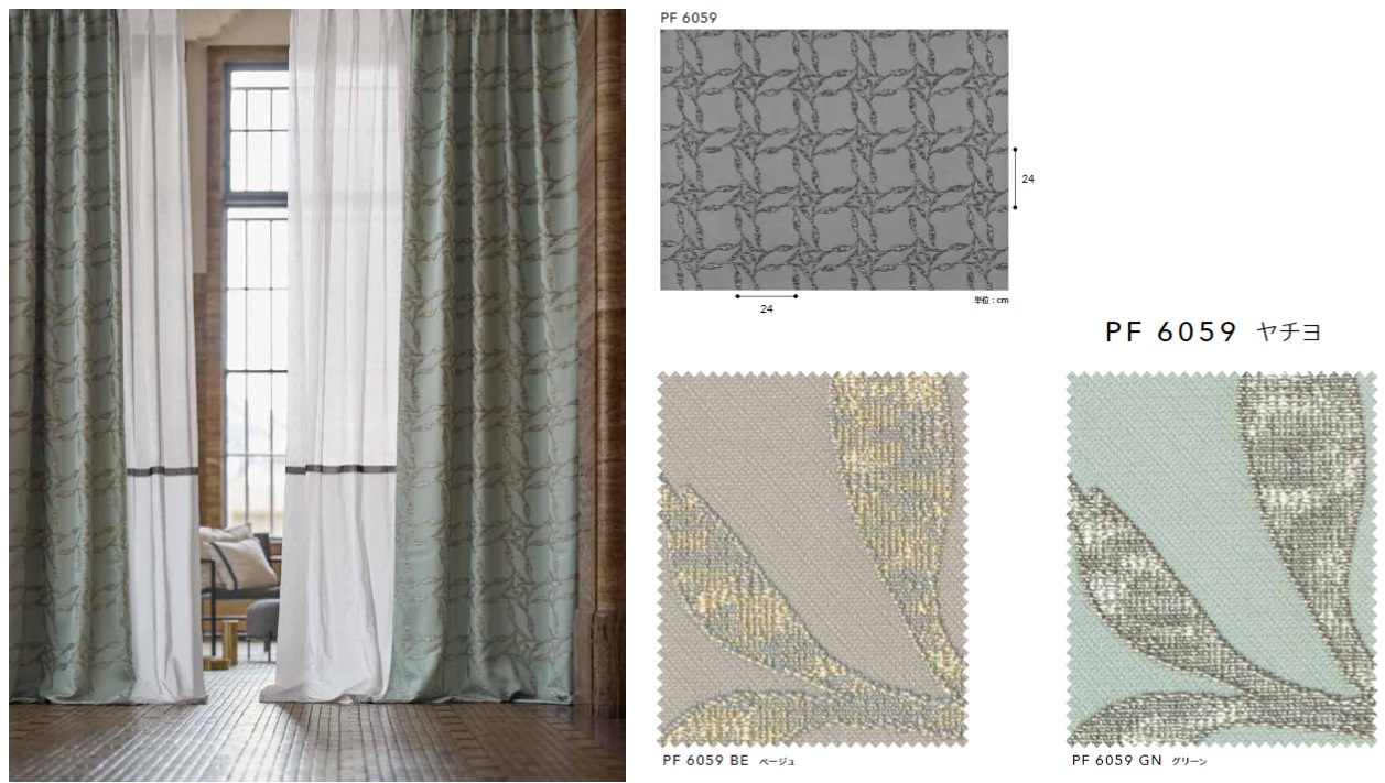 ぱっと見の柄域に大きな違いはありませんが、生地の厚みと質感、光沢表現は各社独特で、実際の窓辺で掛け較べていただくとお客様が目指すインテリアや家具との調和で最適な生地が良く分かります。
