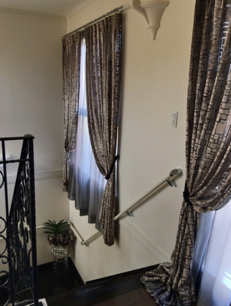 本日は、カーテンの裾を床までたっぷりと垂らした「ブレイク・スタイル」より、『Puddling(パドリング)』と呼ばれるスタイルを採り入れた、階段・廊下窓のスタイル事例をご紹介いたします。