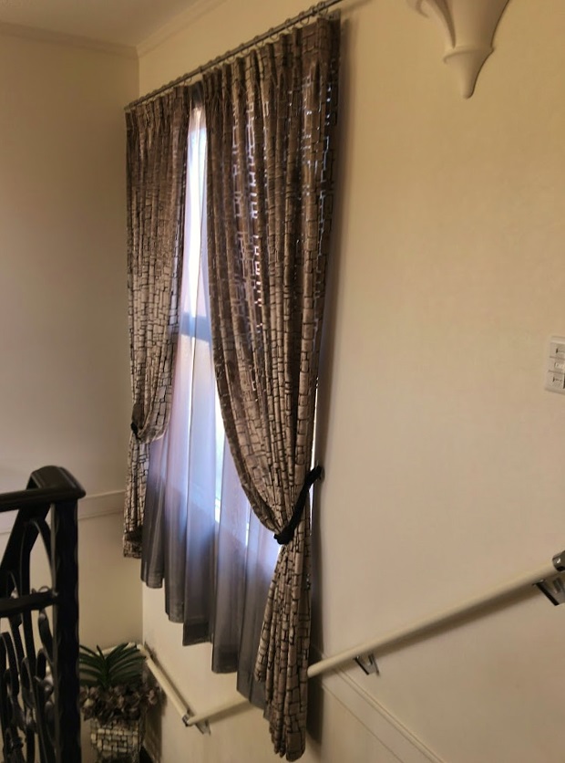 本日は、カーテンの裾を床までたっぷりと垂らした「ブレイク・スタイル」より、『Puddling(パドリング)』と呼ばれるスタイルを採り入れた、階段・廊下窓のスタイル事例をご紹介いたします。