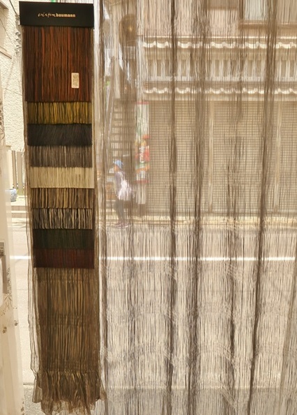 展示品は、「フラット(ヒダ無し)」縫製でご覧いただけますが、ウェーブを多め持たすことで程よい透明感と透けにくさも得られる個性的なシアーです。
