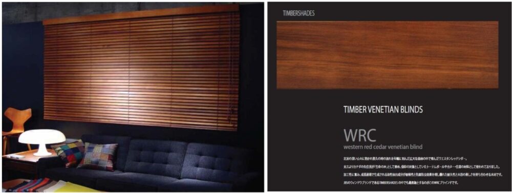 内装との調和を大切にした、ダイニング・エリアの出窓を引き立てる、木製ブラインドのスラット色には、お客様ご検討3配色の中から、『157(パティーナグレイ)』を採用いただきました。