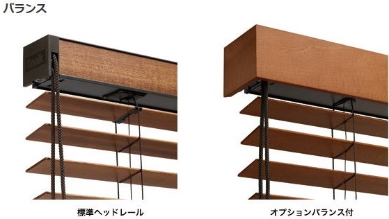 「バランス」を併用すると、分割した窓のごとにスラットの調光角度を変えた時などでも、75mmの化粧板が製品全体の存在感を際立たせると共に上部の統一感と意匠性を向上させるため、カーテンボックスなどの無い場所に設置する場合はおすすめのオプションです。