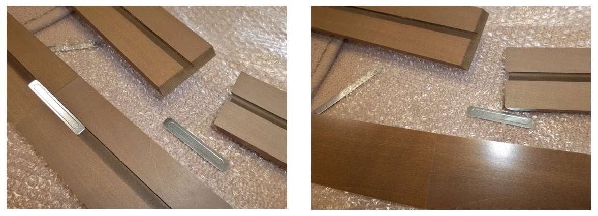 バランスのジョイントは製品台数分行いますが、互いのジョイント面が斜めに切られていることと、専用のプレート金具を溝に挿入して連結できる構造になっているため強固で美しい仕上がりとなります。