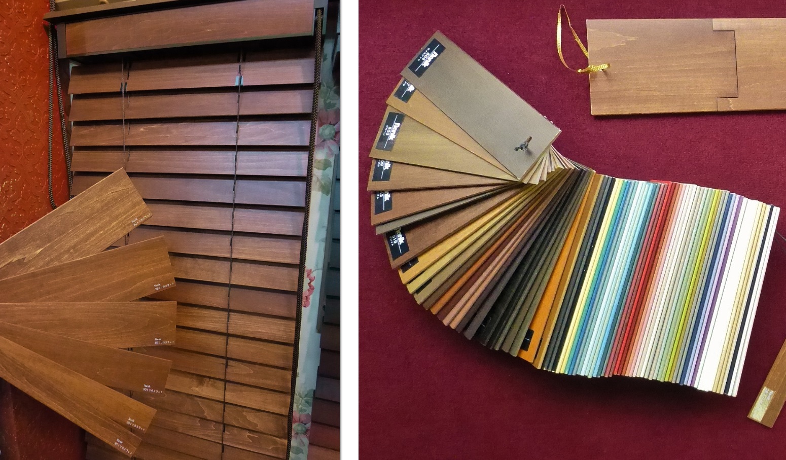 また、国内外主要メーカー(7社)の展示品も比較展示しておりますので、木製ブラインドご検討のお客様はお気軽にご相談ください。