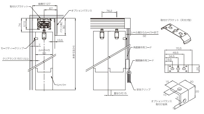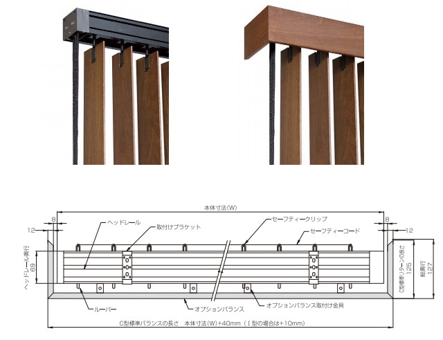 今回は、「リビング・ダイニング」を区画する『間仕切り』目的で設置しているため、ヘッドレールの前後両面に、「上飾り」を目的とした別注「バランス」を設置しています。