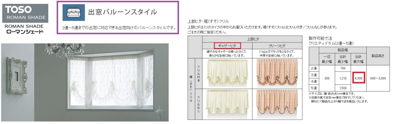 今回は、「TOSO(トーソー)」からリリースされている、『出窓バルーンスタイル』のメカニックをこの多角形窓におけるスタイリングに採用することになりました。