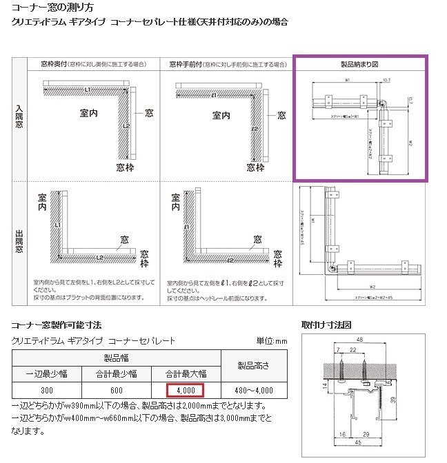 採寸手引きの一例ですが、簡単に説明いたしますと、この様な採寸方法と設置の応用で納品してゆくことになります。