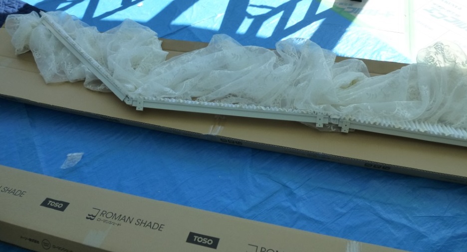 既存のカーテンレールを外して、カーテンボックスの最後方の壁に沿わすようにレース用『バルーンシェード』を設置することになりました。