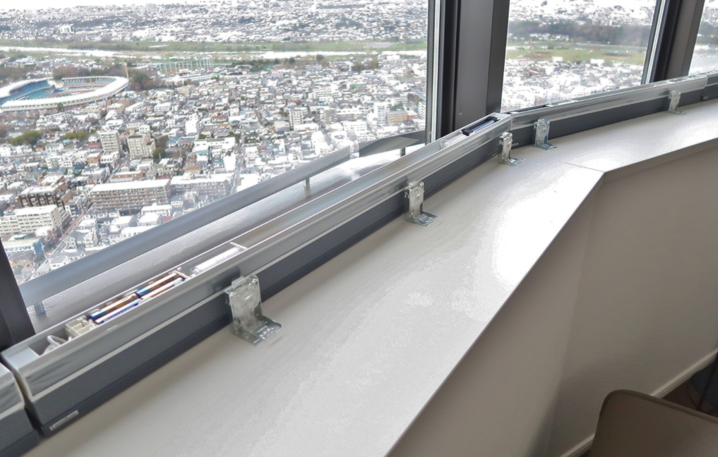 こちらの窓は、カウンターの様な障害物がないことと、窓枠の上部が手の届く位置であったことから電動とは独立させて、手軽な手動昇降ができるコードレス操作をお選びいただいています。