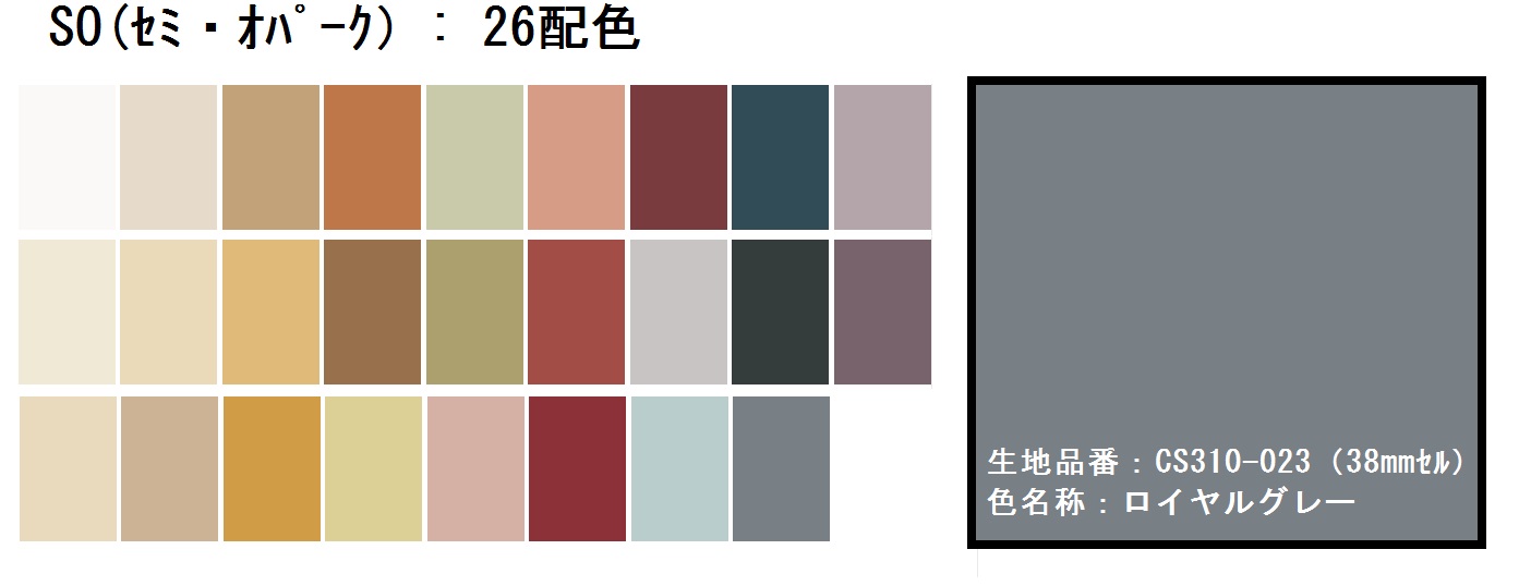 色数の多い採光タイプ(セミ・オパーク)より、シックな雰囲気を持つ「ロイヤルグレー」38mmセルとの組合せでご採用いただきました。