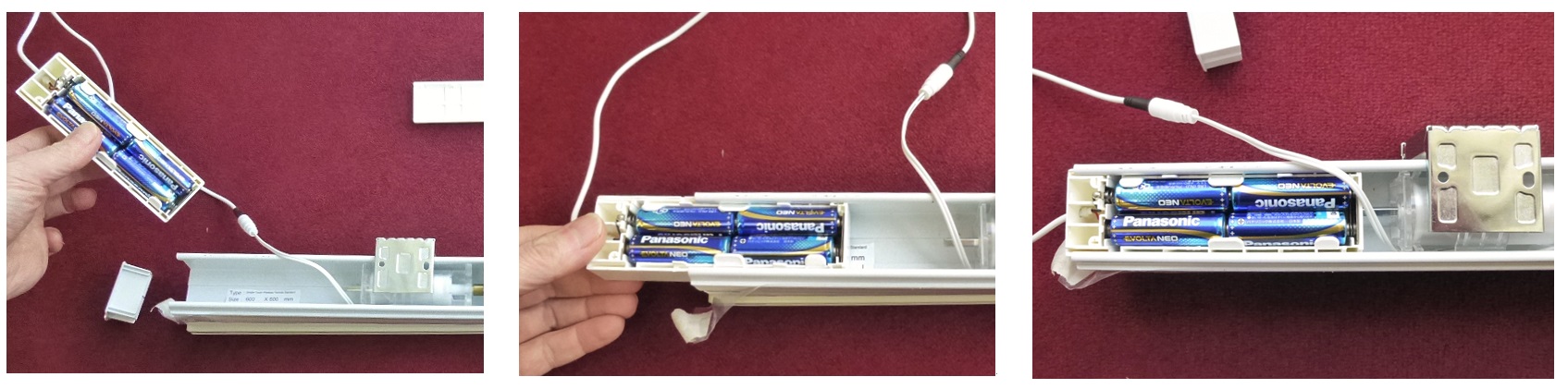 製品1台には8本の単三アルカリ乾電池が必要で、これをバッテリーパックに補充します。