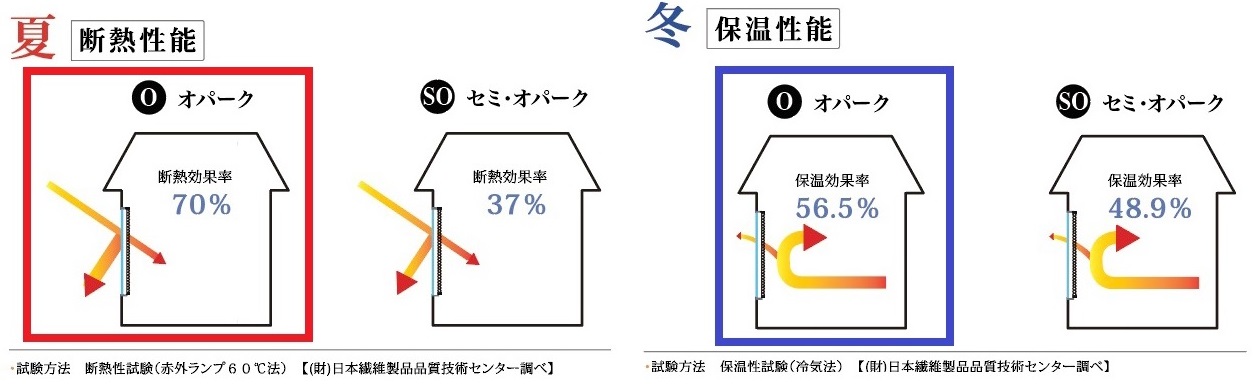 今回ご採用の「遮光(オパーク)」セルは、100%の遮光性が得られるため、採光セル以上の断熱性が期待でき、夏場の熱射を効果的に遮り、冬場は、室内温度の低下を抑制します。