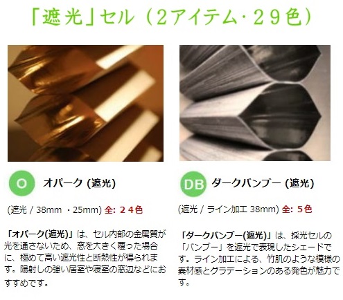 ハニカムシェードの場合、シースルー以外の「採光セル」、「遮光セル」ともに背面色は白で統一されていて、これはどのメーカーの製品でも共通です。