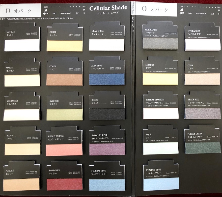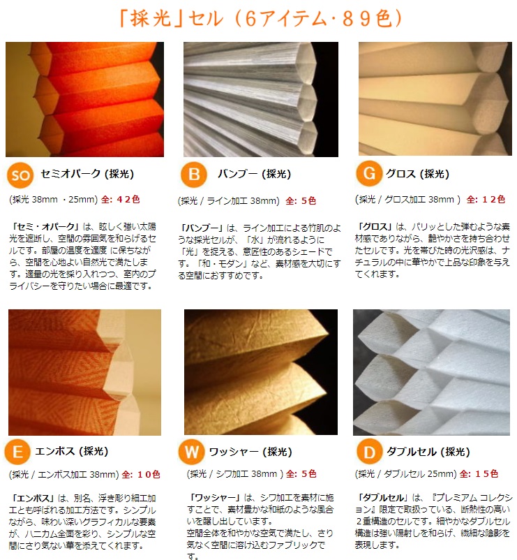 ハニカムシェードの場合、シースルー以外の「採光セル」、「遮光セル」ともに背面色は白で統一されていて、これはどのメーカーの製品でも共通です。