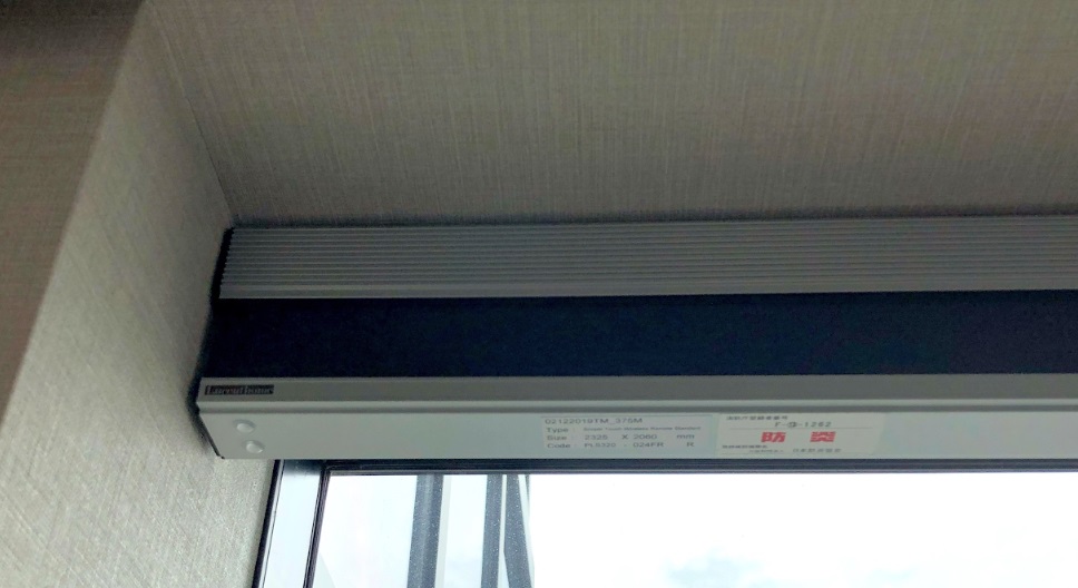 遮光セルを採用した電動ハニカムスクリーンは、まるで電動シッャターを降ろしているかの様な雰囲気。