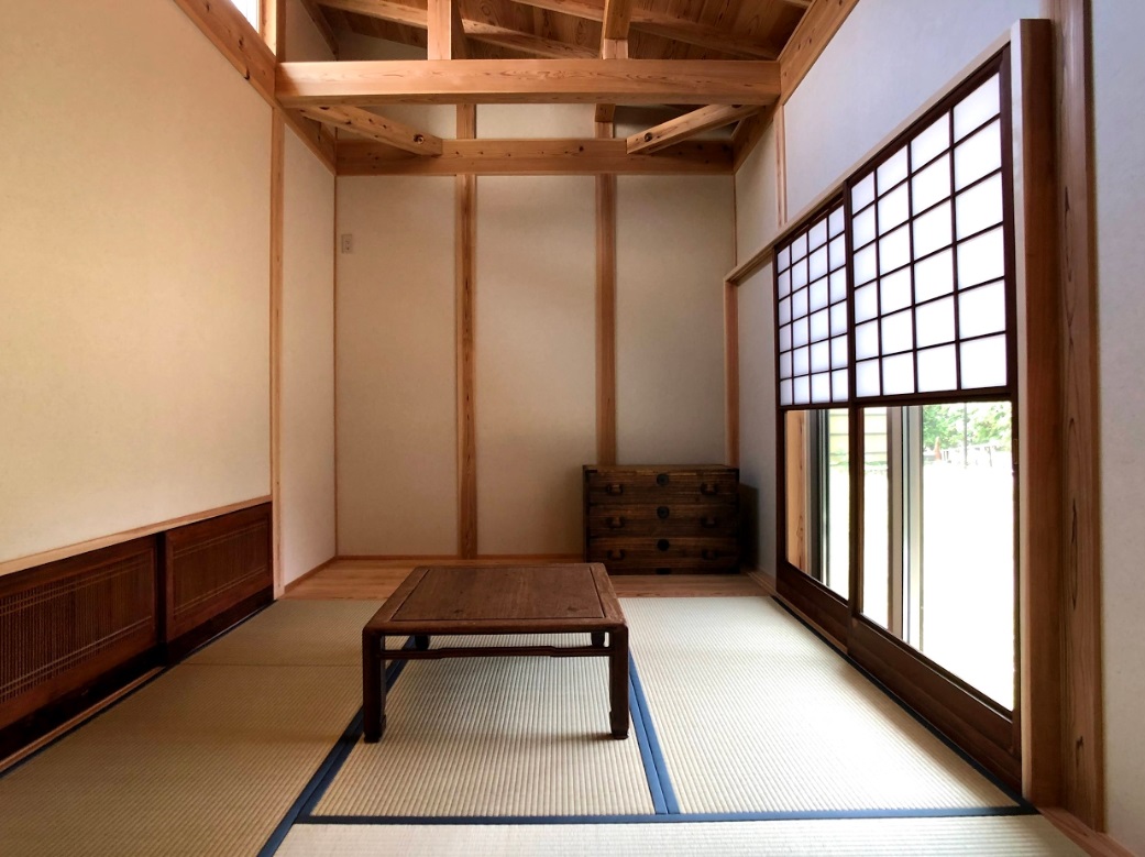 新築の中にも年代物の建具と家具を再生させて使用しているのがお客様のこだわりで、新しさの中に懐かしさが感じられる味わいのある和室です。