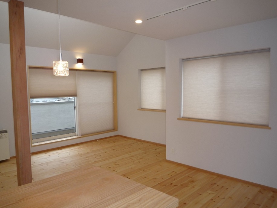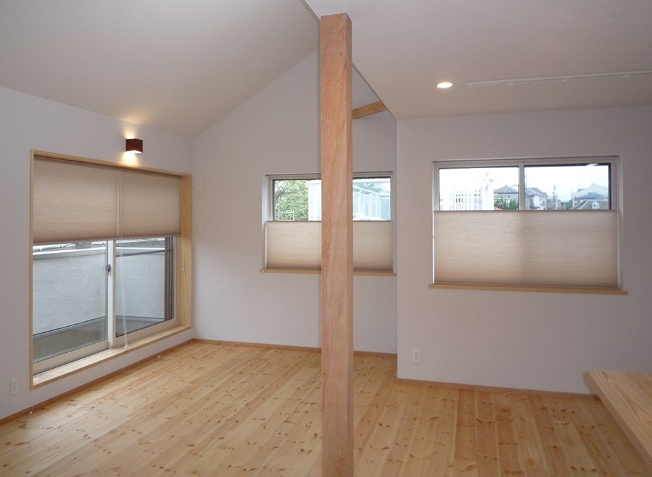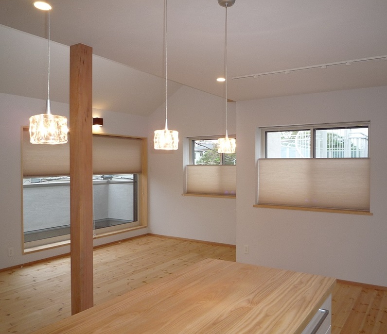 「天然木」と「珪藻土」の内装仕上げでまとめられた注文戸建住宅の窓周りに、断熱性に優れるハニカムスクリーンを採用したいというご要望をいただき、今回は「採光」と「眺望」のコントロール性と夏冬の「断熱性」に優れた、セイキ(SEIKI)のハニカムサーモスクリーン「ツーウェイタイプ」をご採用いただきました。