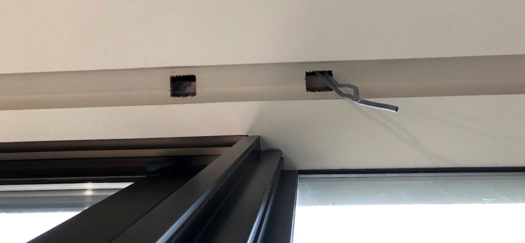 設置に必要な条件の中で、製品幅W2650mm以上に対応する電動ハニカムシェードには、ハンターダグラスの『デュエットシェード』とルーセントホームの『シェルシェード』がありましたが、『デュエットシェード』は設置に必要な奥行きが90mm以上必要なため、今回は製品奥行きが約55mmとコンパクトな『シェルシェード』の電動リモコンタイプをご採用いただくことになりました。