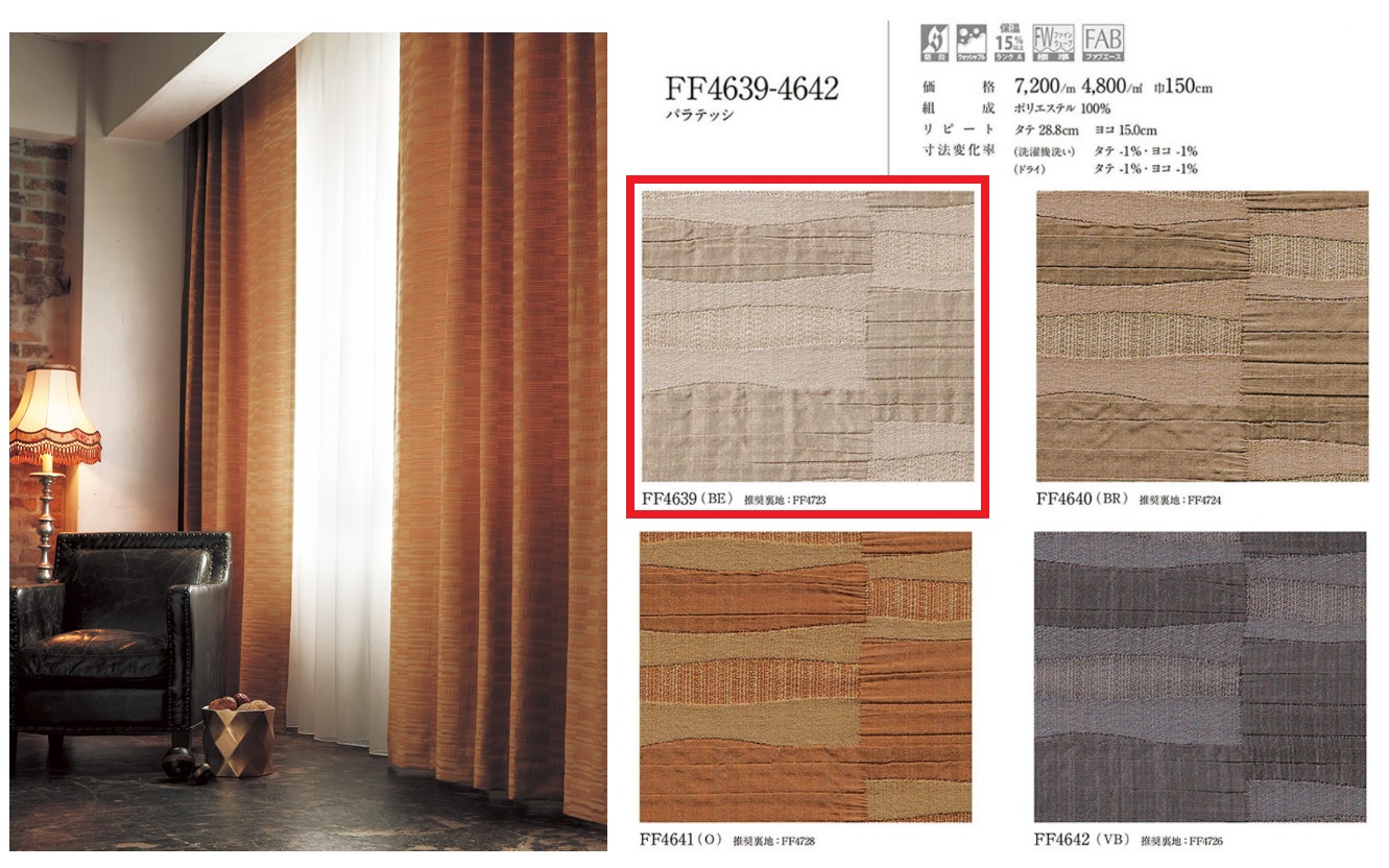 そして、「カーテン」にご採用いだいたのは、川島織物セルコンのカタログ「filo」収録のファブリックより、『パラテッシ』。