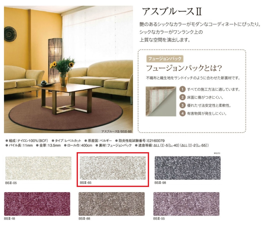 ちなみに、今回ご採用いただいたカーペットは「床暖房対応」の高品質ナイロンカーペットです。