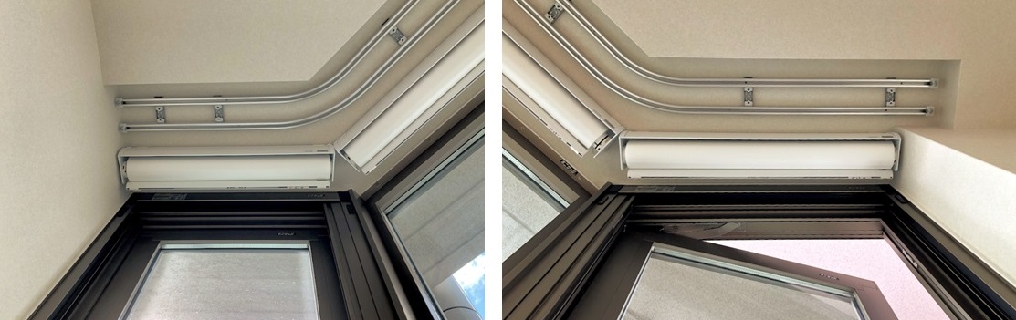 「ベイウィンドウ(台形窓)」での電動調光ロールスクリーン納品事例。