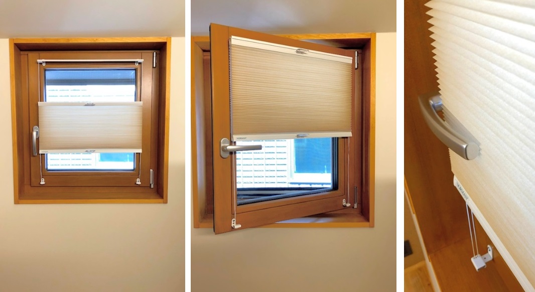 ドレーキップ窓に適した窓周り品。ノーマンのハニカムスクリーン「スマートフィットタイプ」納品事例。