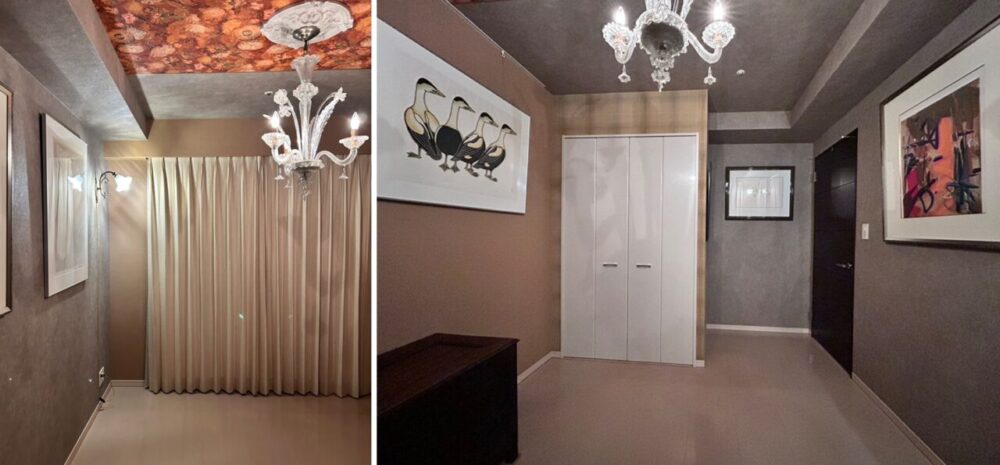リフォーム前の居室には、白を基調とした壁面の要所に絵画が飾られており、すっきり整えられた空間といった印象でしたが、お客様より、「絵画が映える、もう少し表情のある空間にしたい」、「壁紙の貼り分けによって、部屋に奥行きやリズムを持たせたい」とのご要望をいただき、壁面ごとに異なる役割を持たせたコーディネートを実施することになりました。