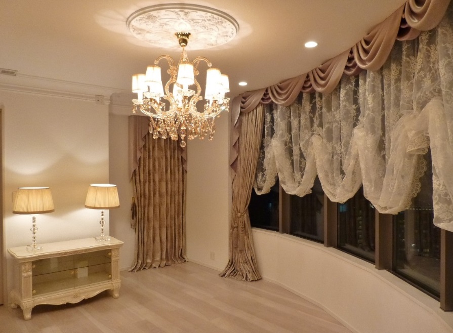 昨日ご案内のの『モールディング装飾』施工に続き、本日も専門性の高い、多角形窓用『バルーンシェード』の納品事例をご紹介させていただきました。