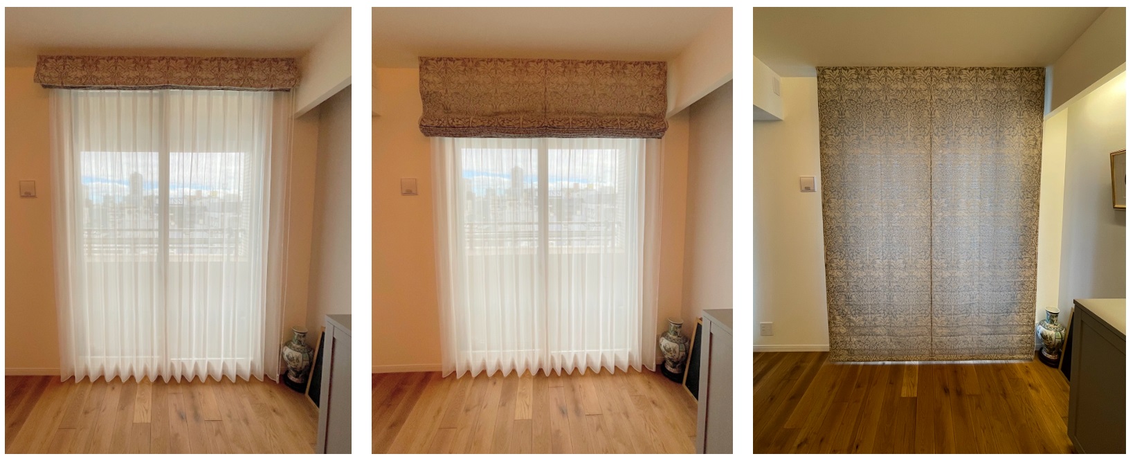 以上、今回も生地の選定からスタイル構成まで、お客様のご希望を汲み取りながら、こだわりのお部屋に合った生地のご紹介と納めをご提案させていただきました。