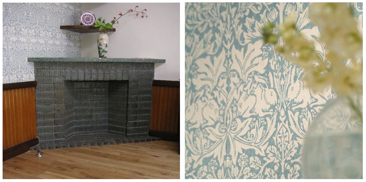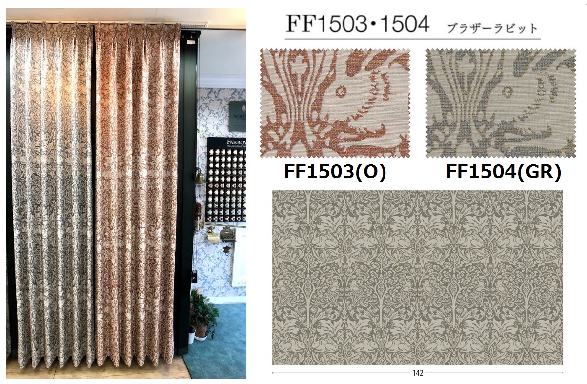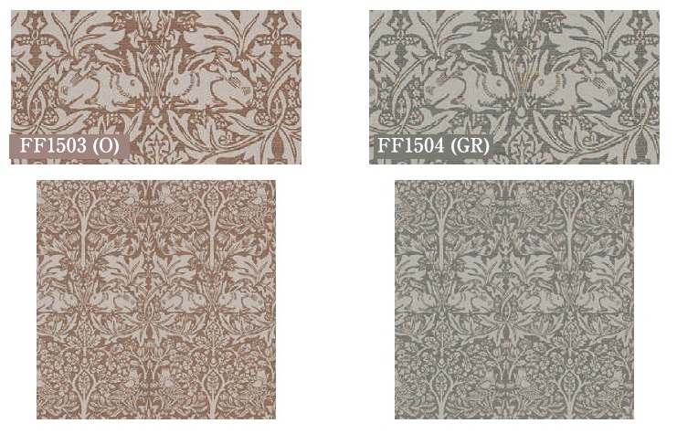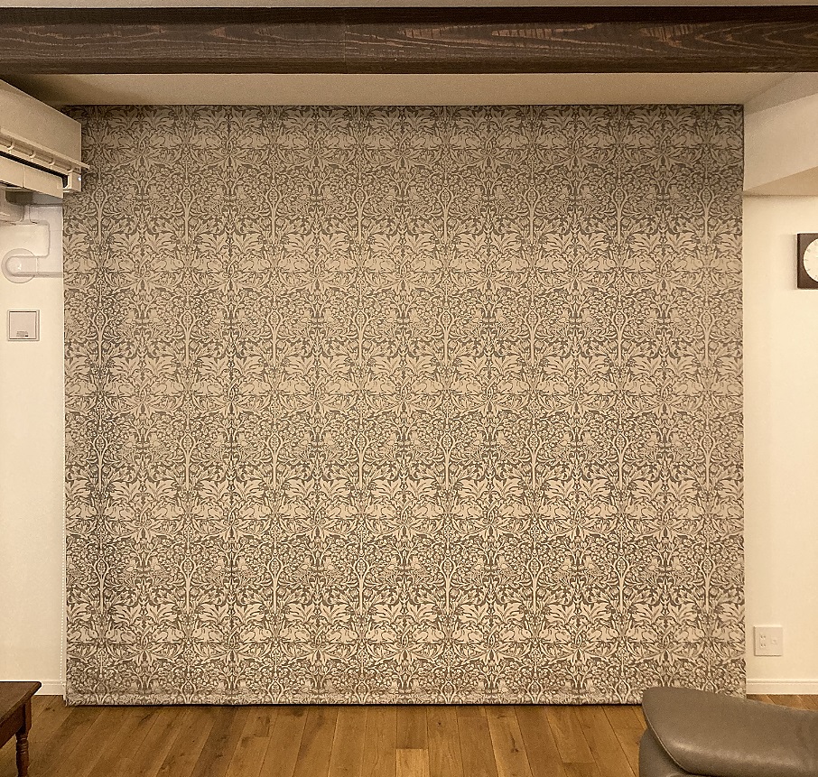 現地お打合せ時にはモリスの他の作品を含めた候補生地をご覧いただきながら、最終的に『ブラザーラビット』のグレイ色をご採用いただきました。
