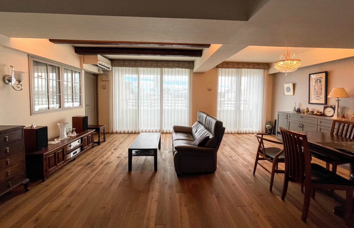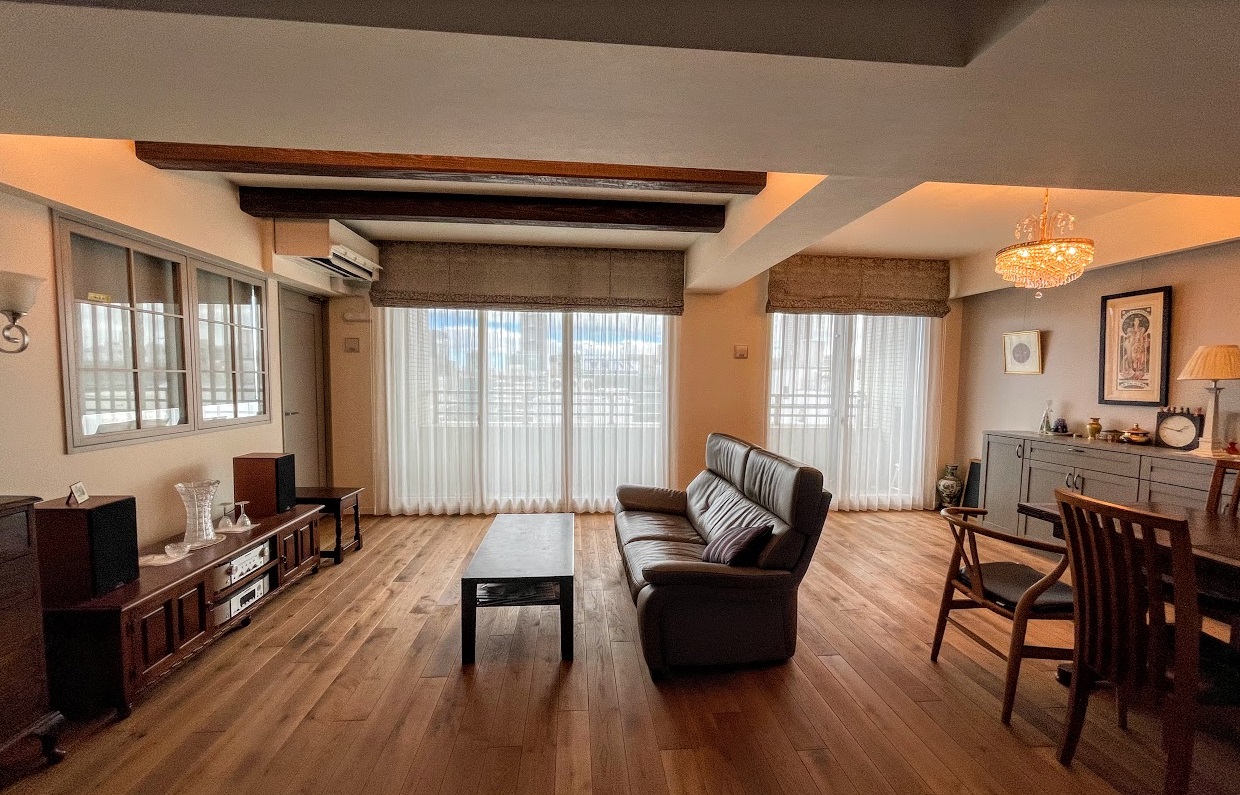 今回ローマンシェードを納品させていただいたのはお引越し間もないマンションのリビング・ダイニングの掃出窓です。
