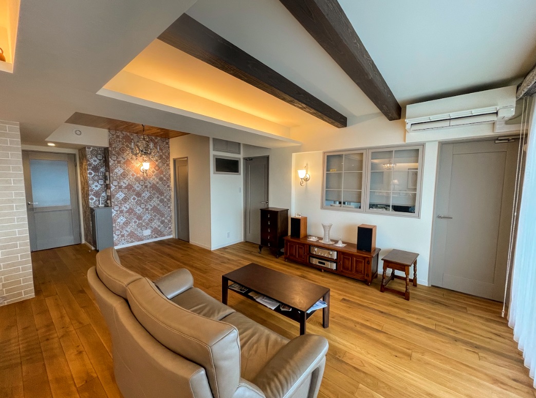 ご入居前のリノベーションでは、壁装と建具に英国・Farrow&Ballのペイントを採用され、アクセントウォールにやはり英国・OSBORNE & LITTLEの壁紙を使われていらっしゃいました。