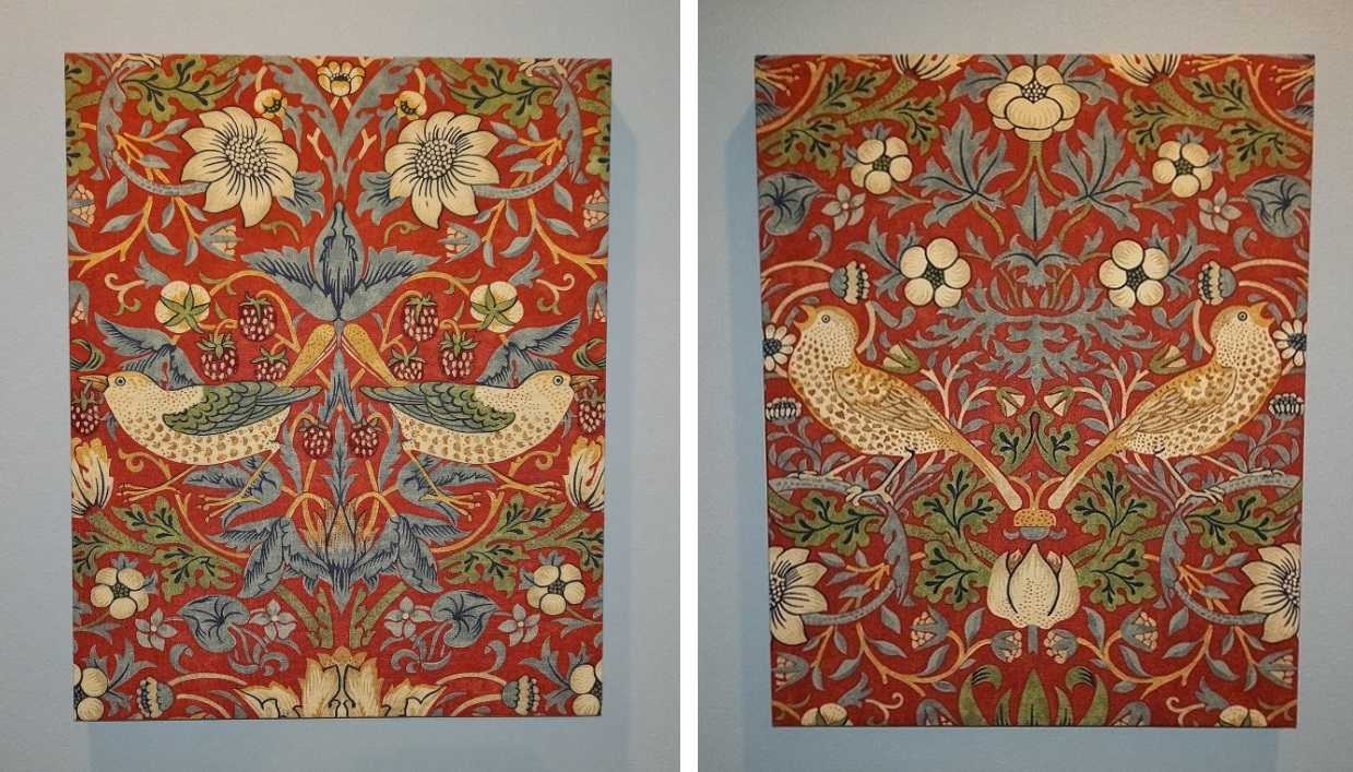 ウィリアム・モリス『ケルムスコットツリー』のカーテン。プリントと織物の比較。