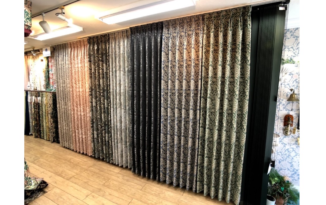 「モリス デザインスタジオ」の新作。『ハニーサクル&チューリップ』と遮光『ウイローボゥ』
