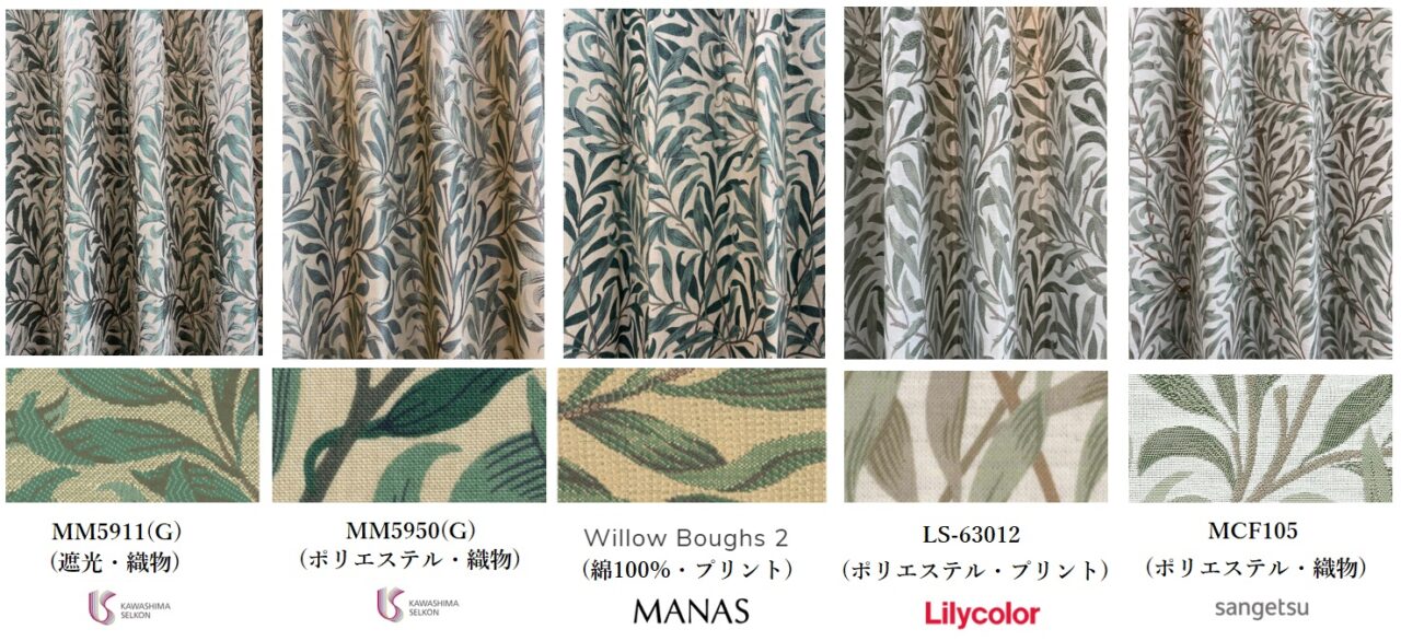 ウイリアム・モリス『ウィローボゥ』のカーテン。メーカー比較と納品事例。