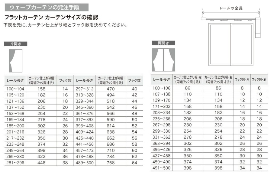 フラットカーテンを電動カーテンレールで開閉する場合、ピッチキープテープで均等に牽引することで、バラつきを抑えた開閉が行えますが、ウェーブスタイルでは、1.5倍フラットを想定したピッチキープテープのご用意がありますので、レールの全長に対して適正なカーテンフックの数を事前に決めることで理想的な仕上がりが得られます。