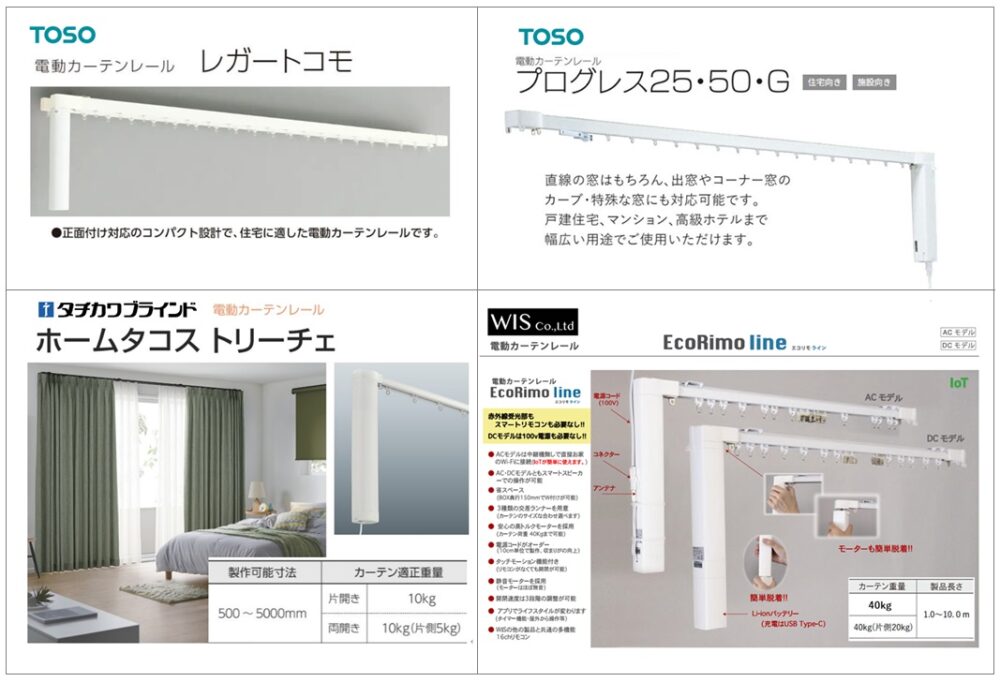 以上、本日は、奥行150mmボックスでのダブル付に対応する電動カーテンレールをとして、TOSOの「レガートコモ」とWISの「エコリモライン」をご紹介させていただきました。