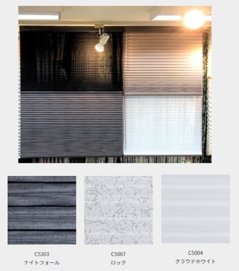 なお、ノーマン製品の場合、黒系のシースルー「ナイトフォール」のご用意もあり、こちらを使用いただくと、畳み寄せた際の生地の発光が抑えられますので、必要に応じてご検討ください。