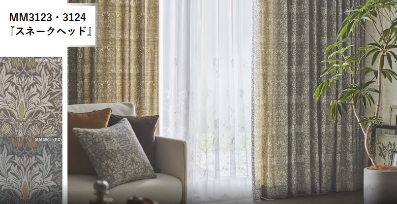 ミツワインテリアでは、川島織物セルコン「MORRIS DESIGN STUDIO」・2022年の新作3作品を丈240cmの縫製品でご用意いたしました。